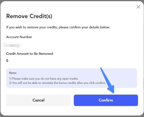 2. Bestätigen Sie den Betrag des Kredits, den Sie entfernen möchten.