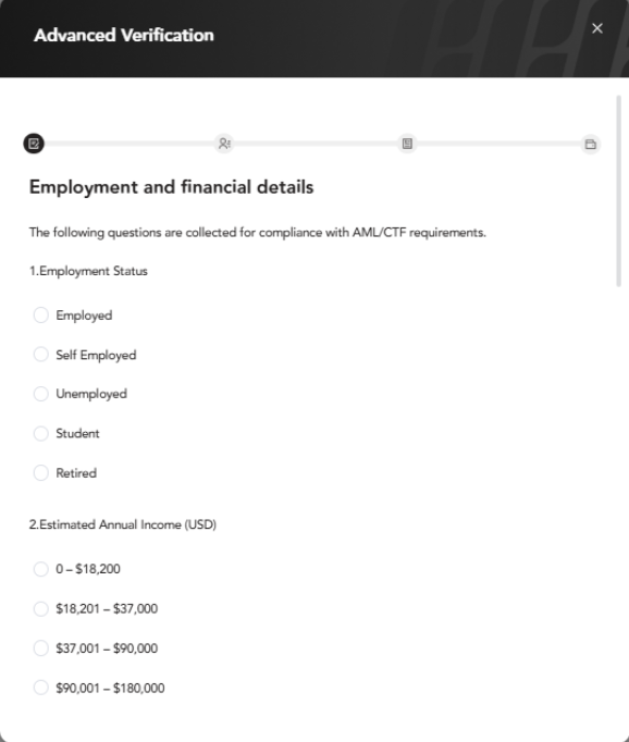 Der Kunde muss das "Plus"-Verifizierungsverfahren abschließen, um berechtigt zu sein, eine Auszahlung per internationaler Banküberweisung zu beantragen.