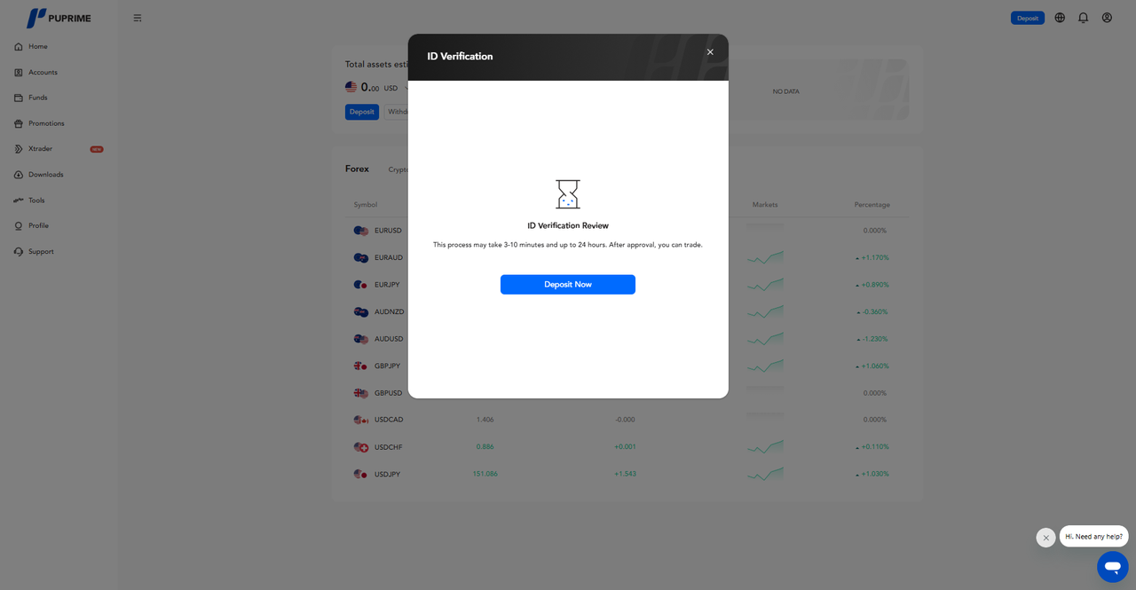 Dann wird die Schaltfläche „Deposit Now“ erscheinen, während Sie darauf warten, dass Ihre Address Verification bestanden wird.