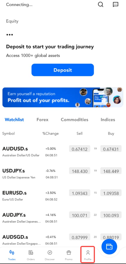 1. Klicken Sie auf die Schaltfläche „Profil“.