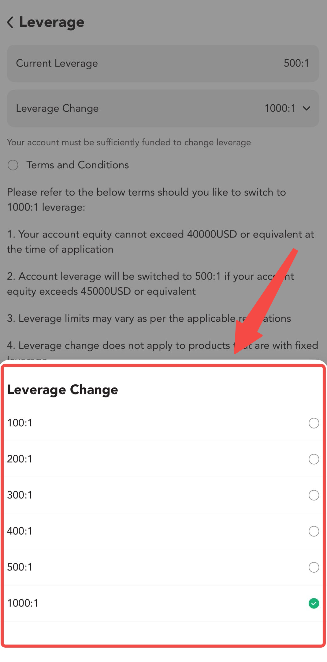 If you wish to change your account leverage via your Client Portal, kindly refer to this link for further steps: How to change my account leverage?