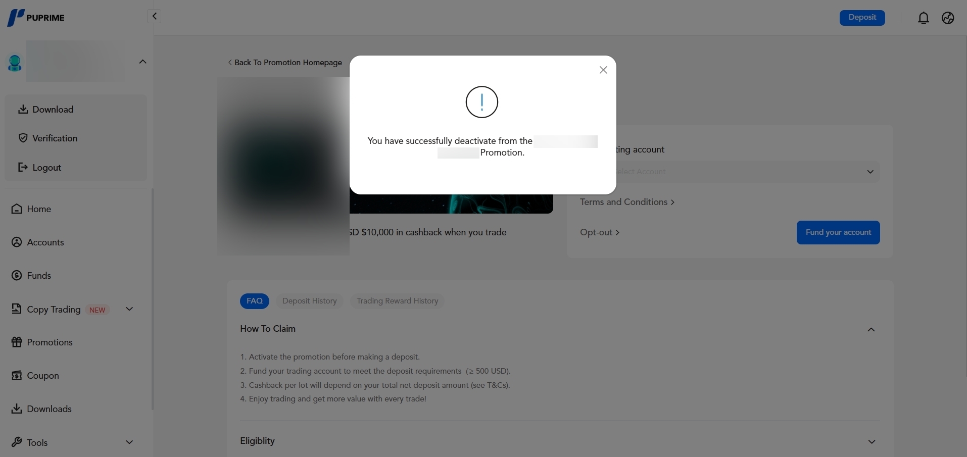 - The system will automatically REMOVE ALL promotional credit from your account(s).