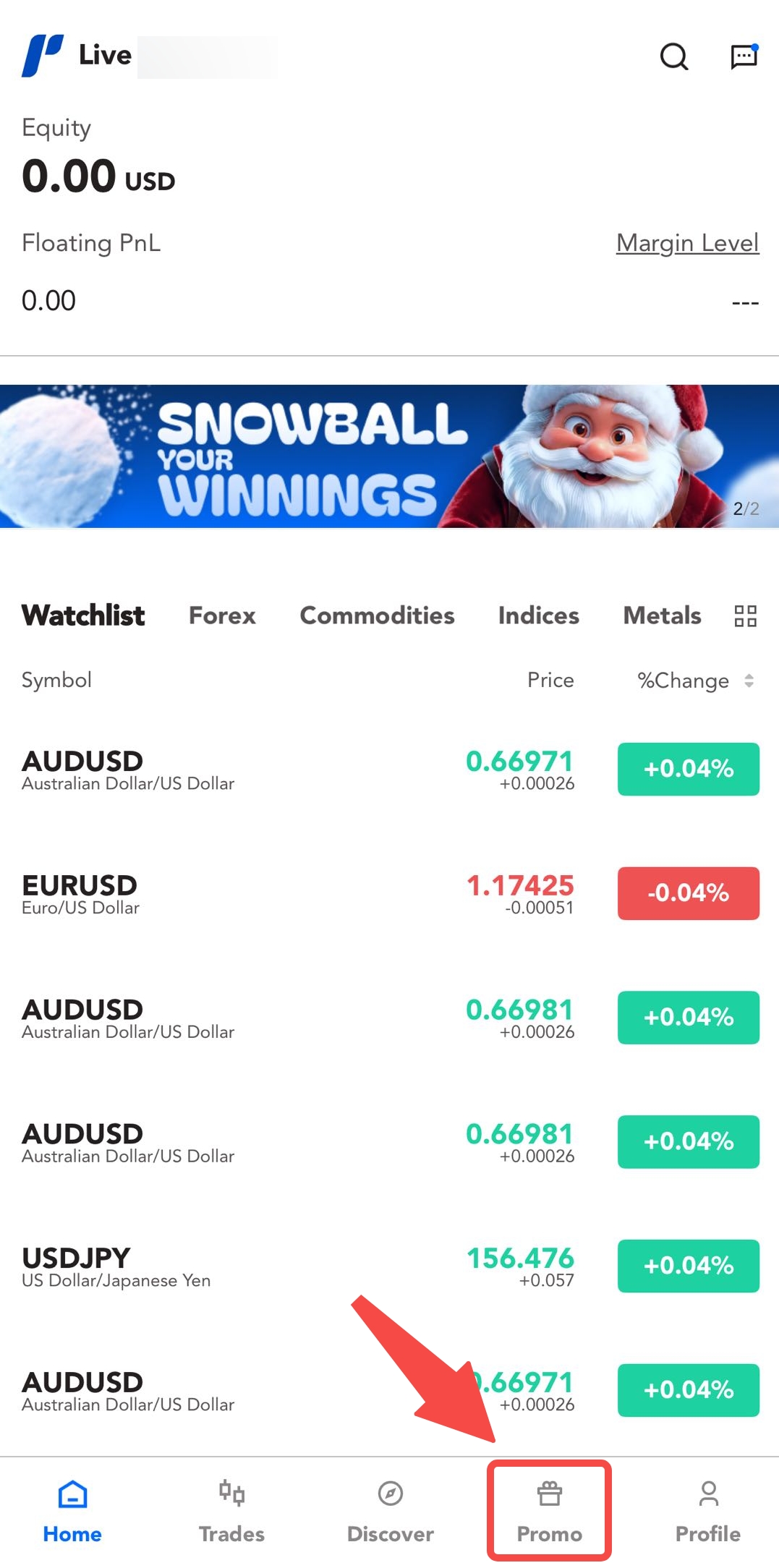 - In your PU Prime app, click the “Promo” button on the bottom bar.