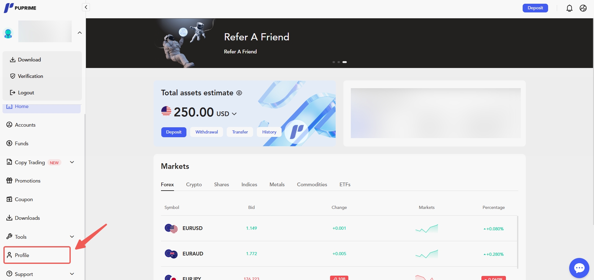 1. Mag-log in sa Client Portal at pumunta sa "Profile".