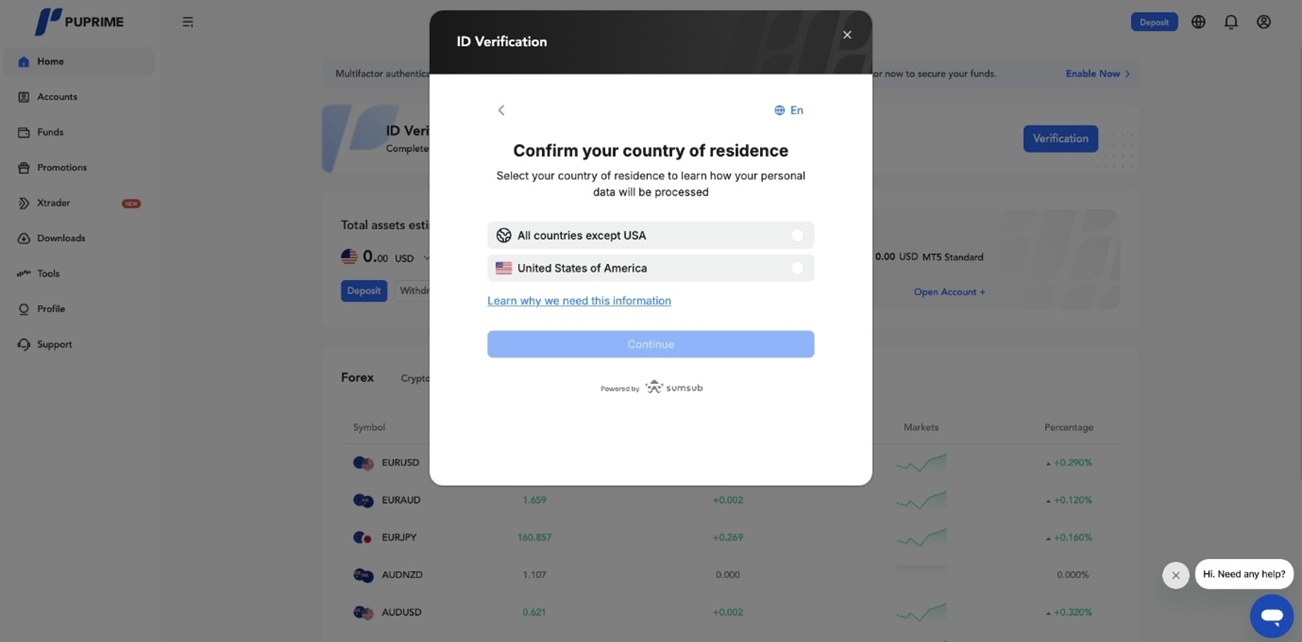 Tungkol sa kinakailangang dokumento para sa pagpapatunay ng account, mangyaring sumangguni sa link na ito https://helpcenter.puprime.com/hc/en-001/articles/6041919161487-What-is-the-account-opening-document-requirement-in-PU-Prime- para sa karagdagang detalye.
