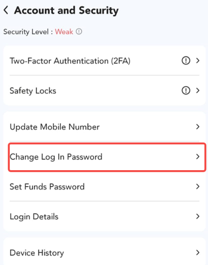 नोट: कृपया ध्यान दें कि पासवर्ड सफलतापूर्वक बदलने के 24 घंटे बाद तक निकासी उपलब्ध नहीं होगी।