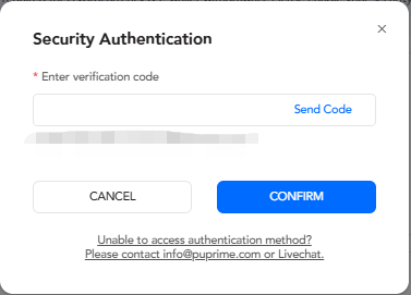 Untuk tujuan keamanan, silakan buka aplikasi autentikator Anda dan masukkan kode yang diberikan. Untuk mengatur aplikasi autentikator, klik tautan ini: https://helpcenter.puprime.com/hc/en-001/articles/9222563828111-How-to-modify-security-authenticator-application