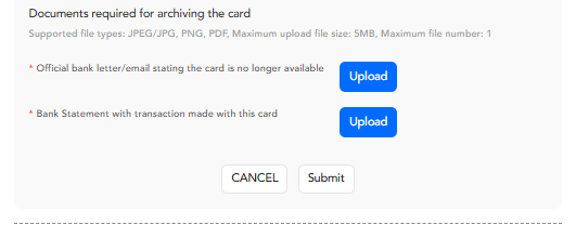Setelah Anda mengarsipkan kartu Anda, Anda dapat mengajukan permintaan penarikan menggunakan metode pembayaran lain dan menunggu departemen terkait kami untuk meninjau permintaan penarikan Anda.