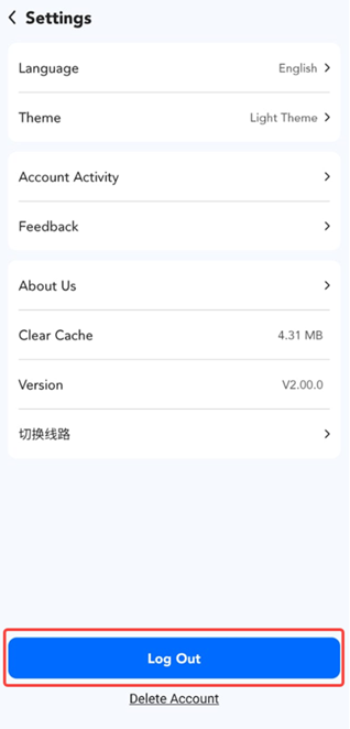 Help Center | PU Prime | More Than Trading PU Prime 임앱 PU Prime APP 문의 PU Prime 앱에서 로그아웃하는 방법은 무엇입니까? 1. "프로필" 버튼을 클릭하세요. 2. "설정" 버튼을 클릭하세요. 3. 계좌에서 로그아웃하려면 "로그아웃" 버튼을 클릭하세요.