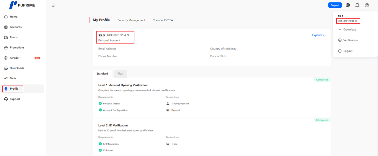 Help Center | PU Prime | More Than Trading Pengurusan Akaun Portal Pelanggan Bagaimana untuk mencari ID Pengguna saya? Selepas log masuk ke portal pelanggan, pilih pilihan "Profil" dari menu papan pemuka, kemudian pilih "Profil Saya". ID Pengguna anda boleh didapati di bahagian "Akaun Peribadi" serta di sudut kanan atas halaman.