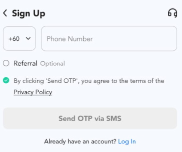 2. Wpisz swój numer telefonu i kliknij "Wyślij OTP via SMS".