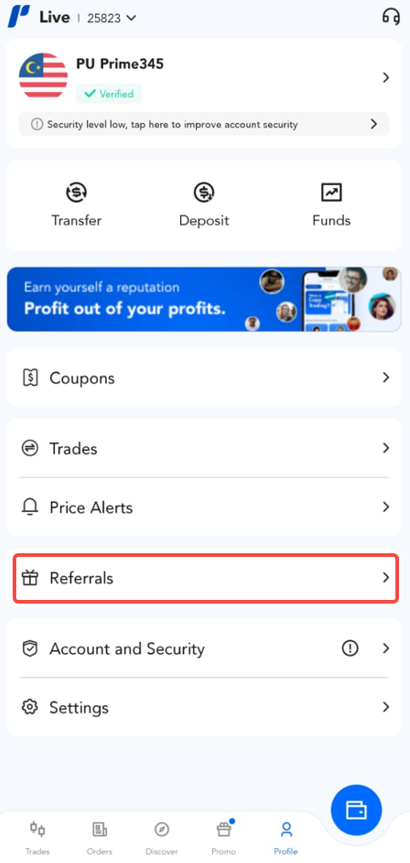 Help Center | PU Prime | More Than Trading Aplicativo PU Prime? Consulta sobre a APP da PU Prime Como indicar um amigo no aplicativo PU Prime? 1. Clique no botão "Perfil". 2. Clique no botão "Referências". 3. Clique em "Convidar Amigos Agora". 4. Copie e partilhe o seu código de referência ou código QR.