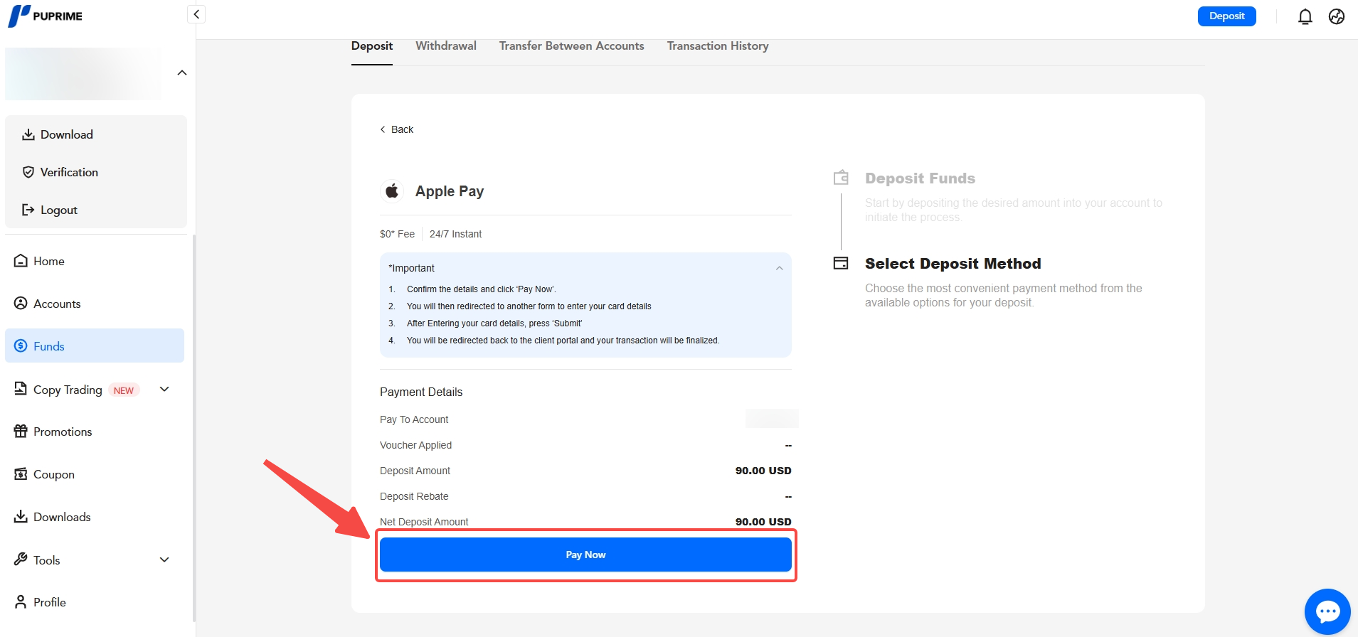 4. Xem xét kỹ các chi tiết thanh toán của bạn và nhấn “Thanh toán ngay” để tiến hành. Một cửa sổ Apple Pay sẽ xuất hiện trên màn hình của bạn. Làm theo hướng dẫn để xác nhận thanh toán. Khi hoàn tất, bạn sẽ được chuyển hướng trở lại Cổng Khách Hàng, và giao dịch của bạn sẽ được hoàn thành.